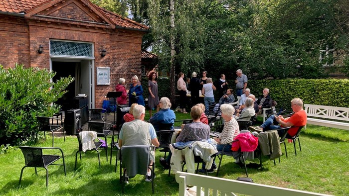 Det foregår under den danske sommerhimmel på græsplænen foran Hospitalskirken – i tilfælde af dårligt vejr afholdes arrangementet inde i kirken.
