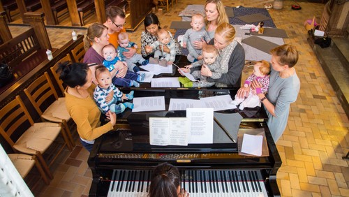 En gudstjeneste for de helt små og deres forældre og bedsteforældre. Ældre søskende er også velkomne. Gudstjenesten varer ca. 30 min. og består af en række sange, salmer og små danse, som har indgået i kirkens babysalmesangsforløb. Efter gudstjenesten er der lidt forfriskninger.